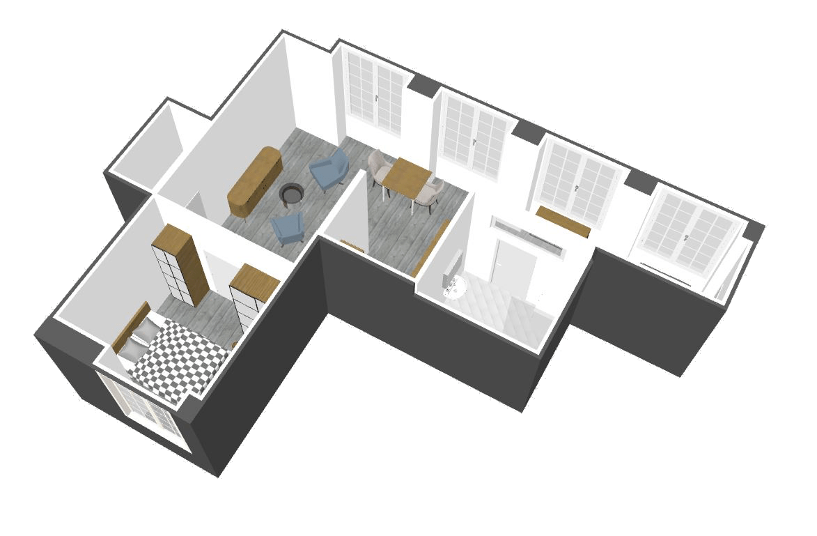 Optimale Raumaufteilung: Flur, Wohnzimmer, Schlafzimmer, Küche und Kammer